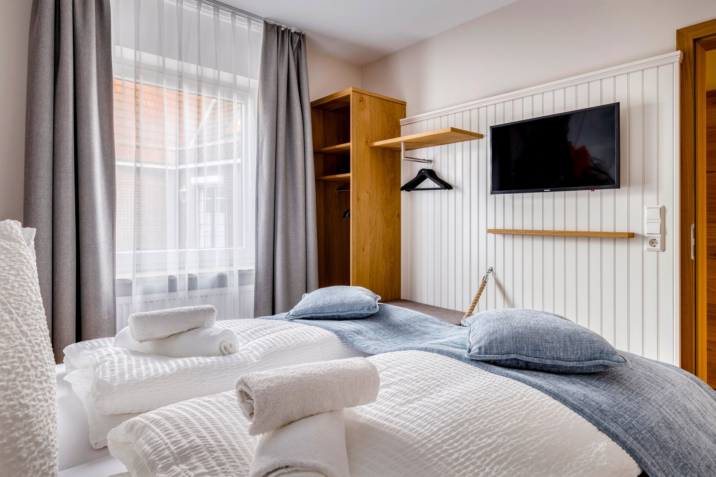 Unser modernes Ferienhus Op de Eck befindet sich 900 m von der Perlebucht entfernt. Nutzen Sie bequem unsere Parkplätze direkt am Haus. Für E-Fahrzeuge haben wir eine praktische Batterie-Ladestation. Sie sind in 20 Minuten zu Fuß oder in ca. 6 Minuten mit dem Fahrrad im 1,9 km entfernten Zentrum. In den Ferienzeiten befindet sich ein Bäckerverkaufswagen in der Straße Große Tiefe, ca. 50 m vom Haus entfernt. Bett- und Handtuchwäsche (Bettwäsche, ein großes und ein kleines Handtuch) können für 20,-- EUR pro Person optional dazu gebucht werden. Diese Leistungen sind nach Buchungsabschluss zusätzlich beim Gastgeber anzumelden und die Kosten hierfür entsprechend extra zu entrichten.