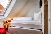 Bett- und Handtuchwäsche (Bettwäsche, ein großes und ein kleines Handtuch) können für 20,-- EUR pro Person optional dazu gebucht werden. Diese Leistungen sind nach Buchungsabschluss zusätzlich beim Gastgeber anzumelden und die Kosten hierfür entsprechend extra zu entrichten. WLAN und ein PKW-Parkplatz am Haus werden kostenfrei zur Verfügung gestellt. Es befindet sich ebenfalls eine PKW-E-Ladesäule auf dem hauseigenen Parkplatz. Auf dem Grundstück befinden sich eine Schaukel zum Spielen; ein Spielplatz befindet sich in der Nähe. Haustiere sind leider nicht gestattet. Im EG rechts neben der Eingangstür gibt es einen Waschraum mit Waschmaschine, Trockner und Staubsauger. Fahrräder können im abschließbaren Fahrradschuppen untergebracht werden.