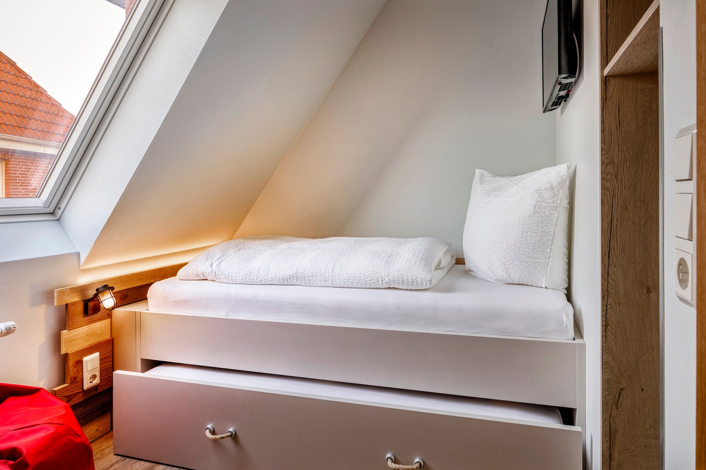 Unser modernes Ferienhus Op de Eck befindet sich 900 m von der Perlebucht entfernt. Nutzen Sie bequem unsere Parkplätze direkt am Haus. Für E-Fahrzeuge haben wir eine praktische Batterie-Ladestation. Sie sind in 20 Minuten zu Fuß oder in ca. 6 Minuten mit dem Fahrrad im 1,9 km entfernten Zentrum. In den Ferienzeiten befindet sich ein Bäckerverkaufswagen in der Straße Große Tiefe, ca. 50 m vom Haus entfernt. Bett- und Handtuchwäsche (Bettwäsche, ein großes und ein kleines Handtuch) können für 20,-- EUR pro Person optional dazu gebucht werden. Diese Leistungen sind nach Buchungsabschluss zusätzlich beim Gastgeber anzumelden und die Kosten hierfür entsprechend extra zu entrichten.