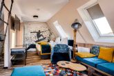 Bett- und Handtuchwäsche (Bettwäsche, ein großes und ein kleines Handtuch) können für 20,-- EUR pro Person optional dazu gebucht werden. Diese Leistungen sind nach Buchungsabschluss zusätzlich beim Gastgeber anzumelden und die Kosten hierfür entsprechend extra zu entrichten. WLAN und ein PKW-Parkplatz am Haus werden kostenfrei zur Verfügung gestellt. Es befindet sich ebenfalls eine PKW-E-Ladesäule auf dem hauseigenen Parkplatz. Auf dem Grundstück befinden sich eine Schaukel zum Spielen; ein Spielplatz befindet sich in der Nähe. Haustiere sind leider nicht gestattet. Im EG rechts neben der Eingangstür gibt es einen Waschraum mit Waschmaschine, Trockner und Staubsauger. Fahrräder können im abschließbaren Fahrradschuppen untergebracht werden.