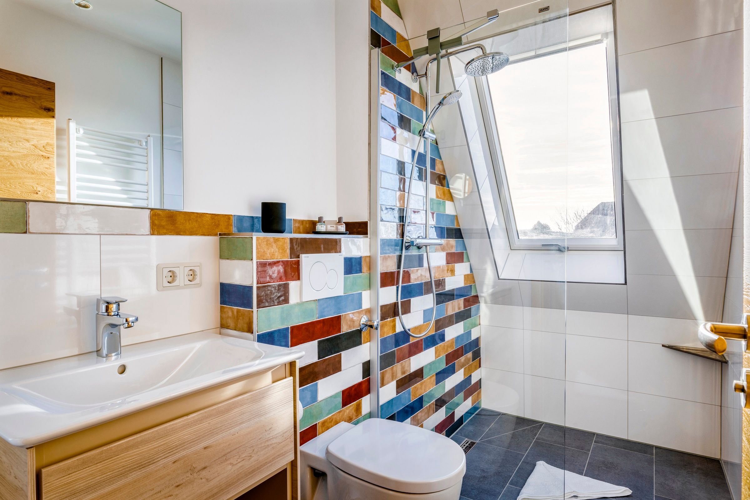 Unser modernes Ferienhus Op de Eck befindet sich 900 m von der Perlebucht entfernt. Nutzen Sie bequem unsere Parkplätze direkt am Haus. Für E-Fahrzeuge haben wir eine praktische Batterie-Ladestation. Sie sind in 20 Minuten zu Fuß oder in ca. 6 Minuten mit dem Fahrrad im 1,9 km entfernten Zentrum. In den Ferienzeiten befindet sich ein Bäckerverkaufswagen in der Straße Große Tiefe, ca. 50 m vom Haus entfernt. Bett- und Handtuchwäsche (Bettwäsche, ein großes und ein kleines Handtuch) können für 20,-- EUR pro Person optional dazu gebucht werden. Diese Leistungen sind nach Buchungsabschluss zusätzlich beim Gastgeber anzumelden und die Kosten hierfür entsprechend extra zu entrichten.