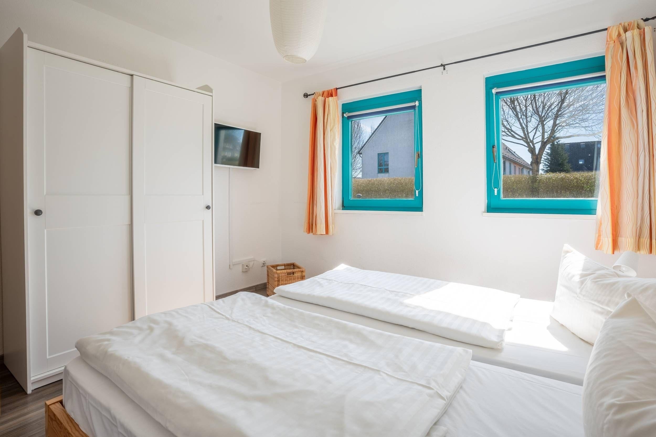 In beiden Schlafzimmer sind 2 Doppelbetten und Kleiderschränke mit ausreichend Stauraum sowie Flat TV.