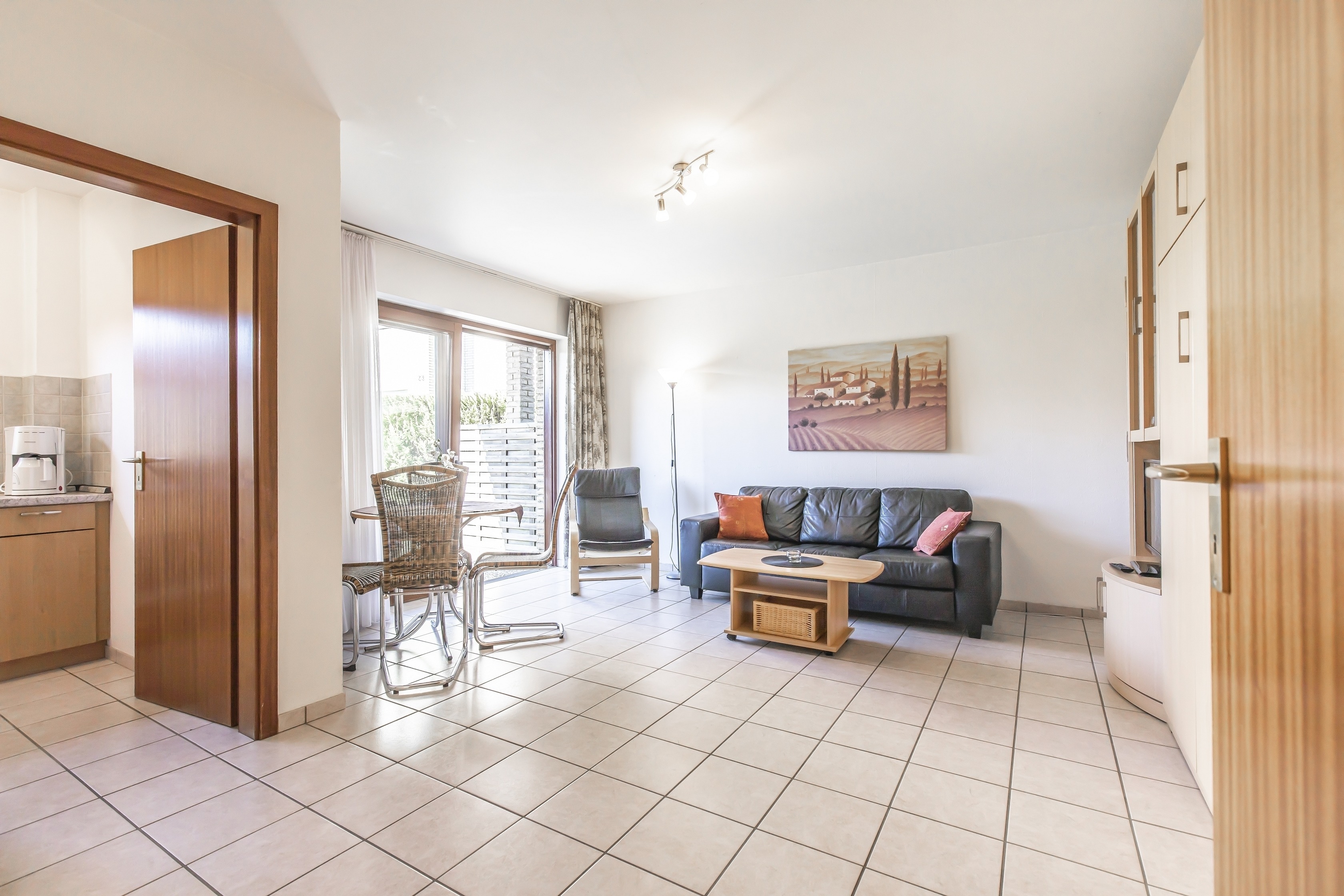Ferienwohnung in einer sehr ruhigen Lage in Grömitz für 2 - 4 Personen, Terrasse, 300 m zum Hauptbadestrand, Meerwasser-Brandungsbad, Kurzentrum und Kurpark. Ideal für Kur-Urlauber. Kabel-TV. Moderne Einbau-Küche mit Zubehör, Spülmaschine, Duschbad/WC, Fußbodenheizung. WLAN-Anschluss im Haus. Eigene Parkplätze. Ganzjährig geöffnet.