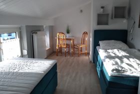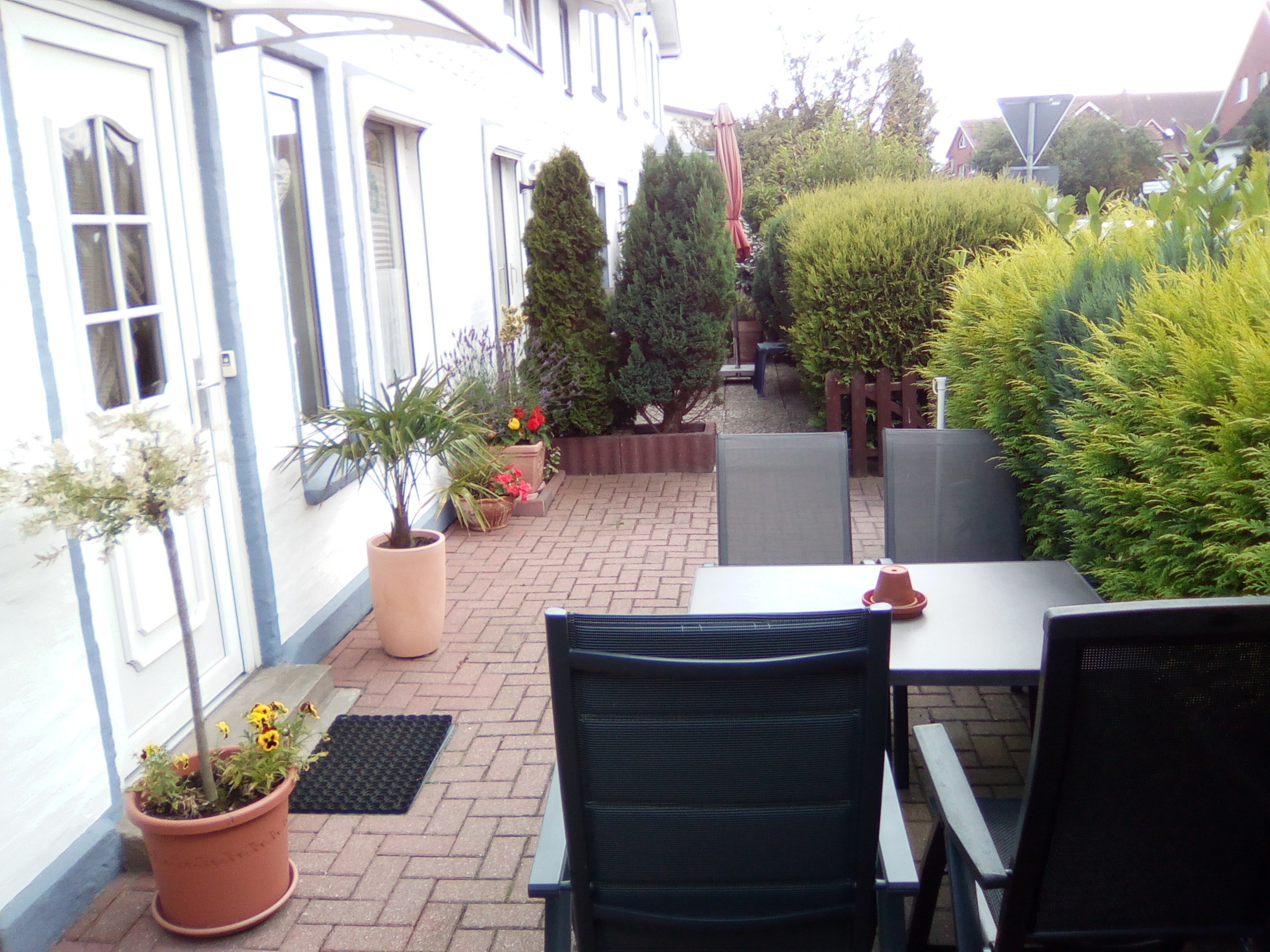 Helle, gemütliche 2 Zi.- Dachgeschoß- Wohnung Nr.8 (50qm) für 1-2 Pers.mit Terrasse. Terrassenmöbel m. Auflagen u. Sonnenschirm.