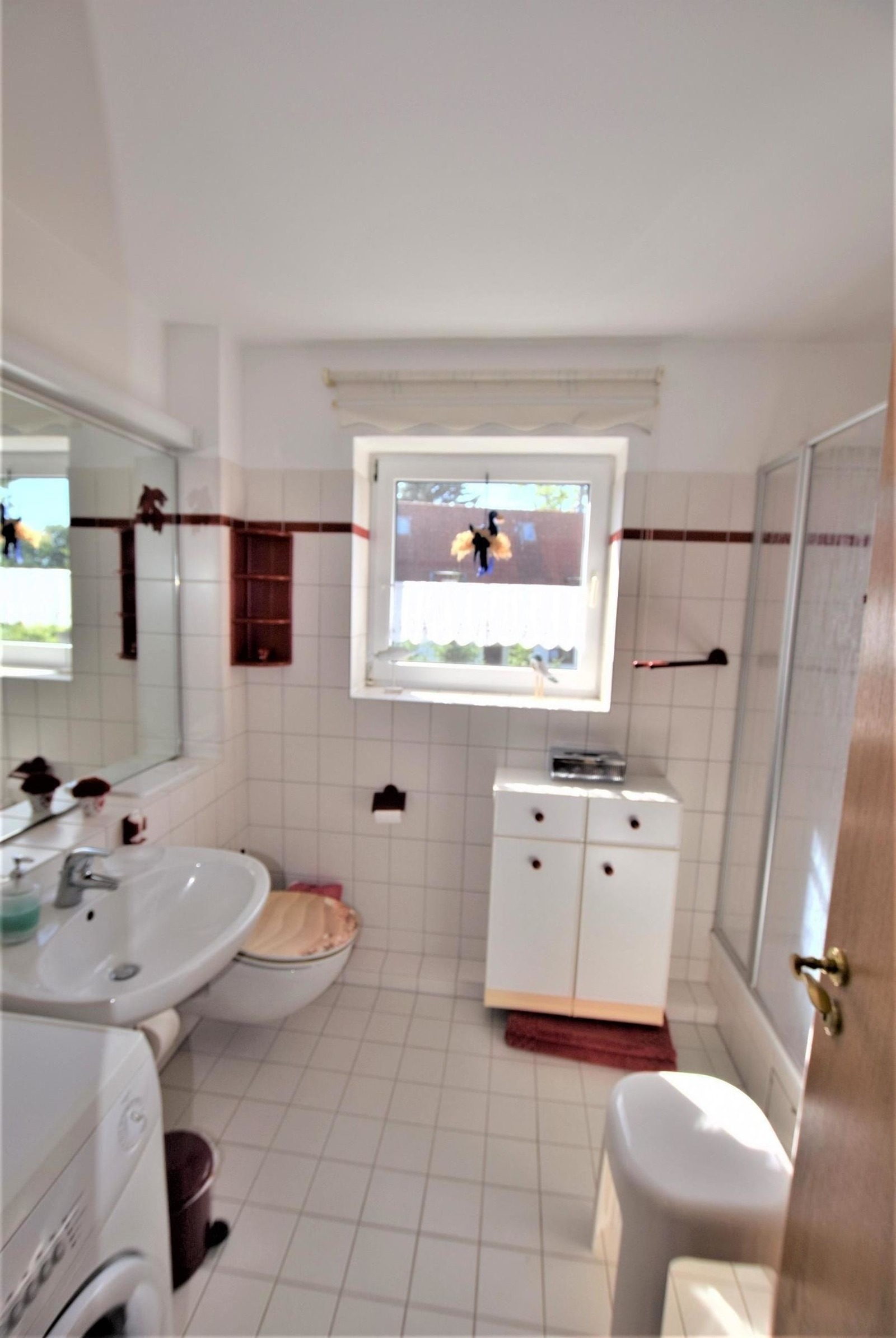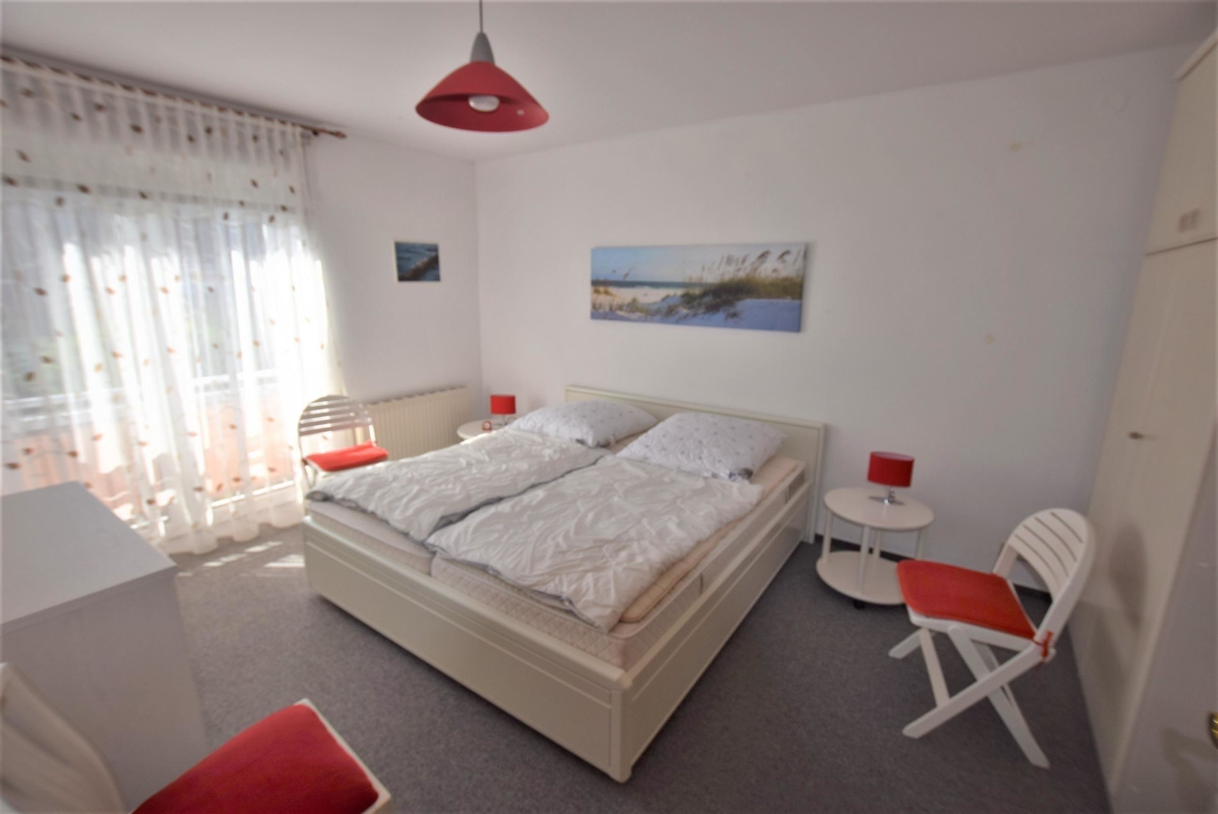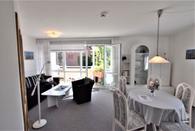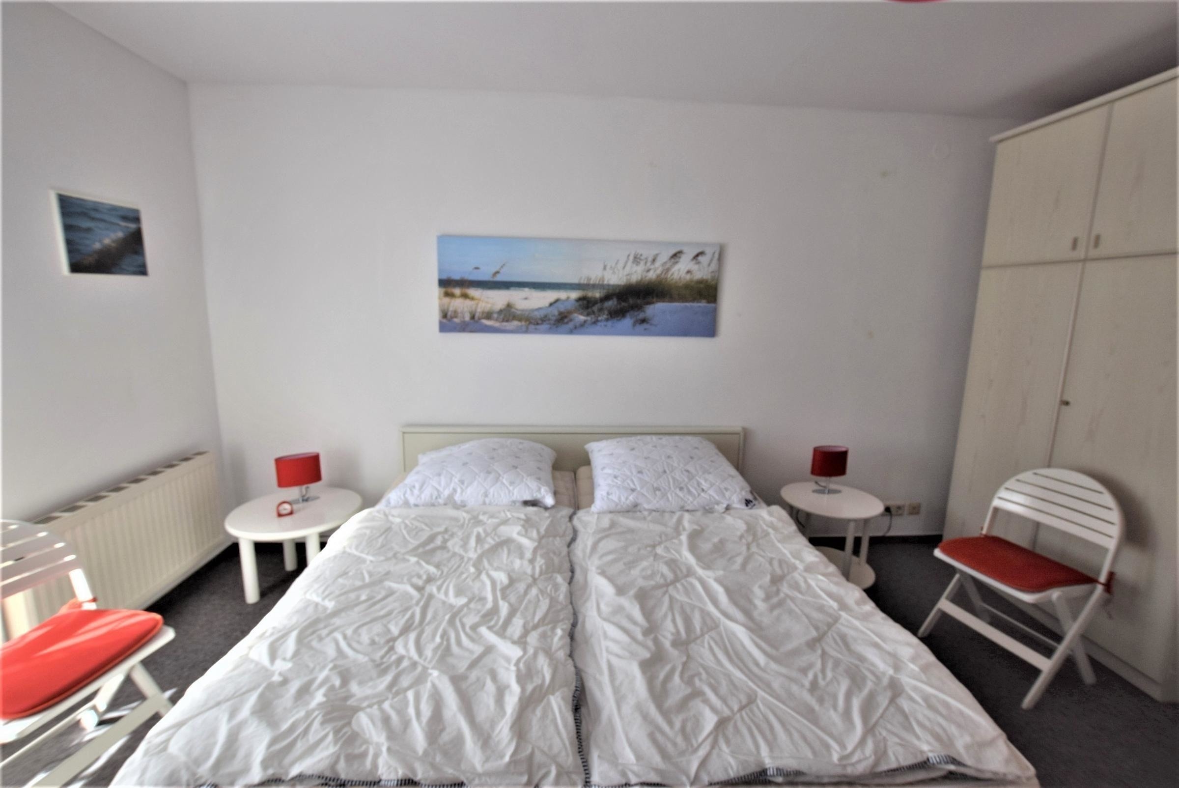 Die Ferienwohnung „Sanddorn“ im 1. OG bietet eine hochwertige Ausstattung und lichtdurchflutete Räume, die zum Entspannen einladen. Der Flurbereich ist mit einer Garderobe und einem Schuhschrank ausgestattet. Das Wohn-Esszimmer verfügt über eine gemütliche Couchecke, einen Esstisch sowie Kabel-TV. Das Schlafzimmer bietet ein Doppelbett (180x200 cm) und einen Kleiderschrank. In der gut ausgestatteten Küche finden sich unter anderem ein Cerankochfeld, Umluftbackofen, Kühlschrank mit Gefrierfach, Kaffeemaschine und Mikrowelle. Das Badezimmer ist mit Dusche und WC ausgestattet. Eine Waschmaschine und ein Trockner stehen im Keller gegen Gebühr zur Verfügung. WLAN ist kostenlos. Ein Balkon mit Gartenmöbeln lädt zum Verweilen ein. Ein Wäschepaket kann optional gebucht werden. Ein Parkplatz steht vor dem Haus zur Verfügung. Der Mindestaufenthalt beträgt 2 Nächte. Die Wohnung ist Nichtraucher.