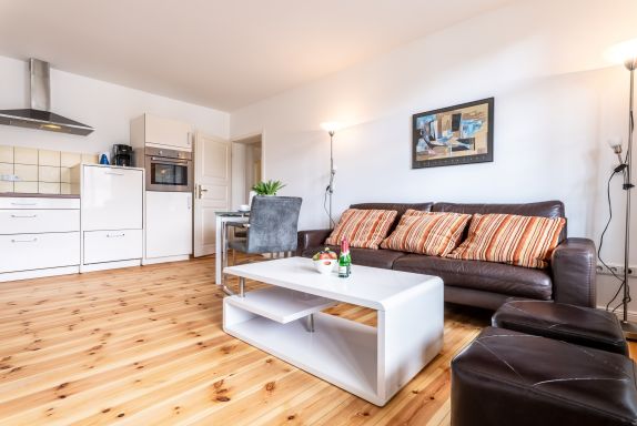 Sie wohnen im Obergeschoß in einer liebevoll sanierten Villa im Bäderarchitekturstil, in ruhiger und zentraler Lage. Zum Strand sind es nur ca. 100 Meter. Das Appartement ist 51 qm groß und mit modernen Möbeln ausgestattet. Der moderne Bio-Kamin lädt zum Ausklang eines romantischen Abends ein. Es bietet insgesamt zwei Schlafplätze (Doppelbett 140x200) im separaten Schlafzimmer. Die Böden sind mit rustikalen Landhausdielen und Fliesen ausgelegt. Im modernen Bad sind ein Bidet, eine Dusche, eine Badewanne und ein beheizter Handtuchhalter vorhanden. Eine großzügige offene Balkonveranda, in Südostausrichtung, lädt zum Verweilen ein. Am großen Aussengrill kann Leckeres zubereitet werden. Einen separaten Stellplatz finden Sie hinter der Villa. Fahrräder können untergestellt werden.