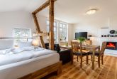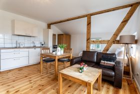 Sie wohnen im Obergeschoß in einer liebevoll sanierten Villa im Bäderarchitekturstil, in ruhiger und zentraler Lage. Zum Strand sind es nur ca. 100 Meter. Das Appartement ist 39 qm groß und mit skandinavischen Landhausmöbeln ausgestattet. Der moderne Bio-Kamin lädt zum Ausklang eines romantischen Abends ein. Es bietet insgesamt zwei Schlafplätze (140x200) im Wohnbereich. Die Böden sind mit rustikalen Landhausdielen und Fliesen ausgelegt. Im separaten, nur für Sie zugänglichen Bad, welches sich neben der Wohnung befindet, sind WC, eine Dusche und ein beheizter Handtuchhalter vorhanden. Ein schöner Balkon, in Südwestausrichtung, lädt zum Verweilen ein. Am großen Aussengrill kann Leckeres zubereitet werden. Einen separaten Stellplatz finden Sie hinter der Villa. Fahrräder können untergestellt werden.