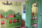 Speziell im grünen Schlafzimmer liegt der Charme des Alters knallhart vor euch, Betten und Schrank scheinen aus dem benachbarten Gutshaus geklaut.