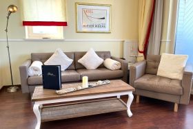 Außerdem bieten Sessel und Sofa Gemütlichkeit in dem liebevoll eingerichteten Appartement.