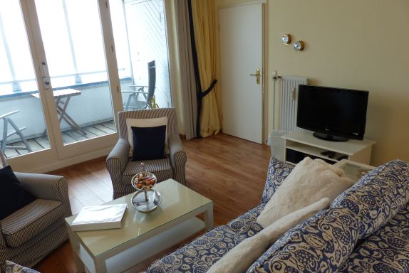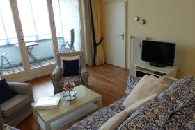 Schlafzimmer mit 2 Einzelbetten und kann mit 4 Personen bewohnt werden. Sofa und Sessel bieten ansonsten Gemütlichkeit in diesem liebevoll eingerichtetem Appartement.