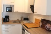 Die Küchenzeile rundet den Wohnbereich ab. Sie verfügt über eine gute Ausstattung und sorgt mit Ceranfeld, Backofen, Mikrowelle, Kühlschrank, Kaffeemaschine und mehr dafür, dass auch Selbstversorger voll auf ihre Kosten kommen.