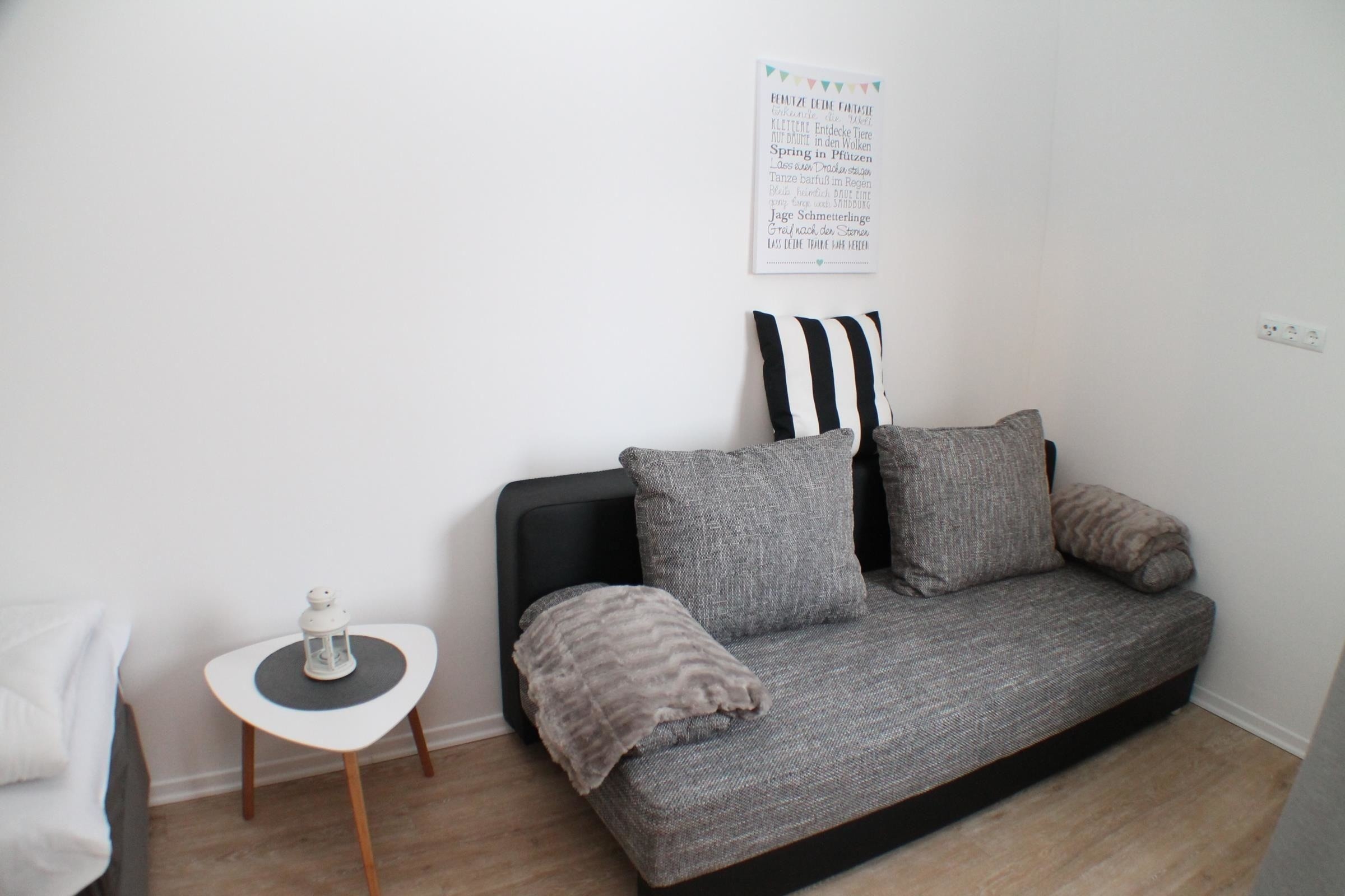 Ebenso wie der Rest der Wohnung ist der Wohnraum geschmackvoll ausgestattet und modern eingerichtet.