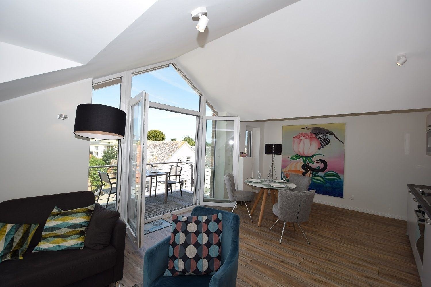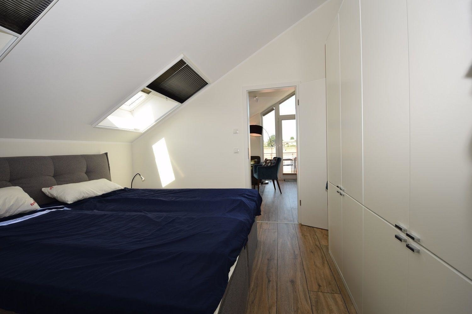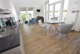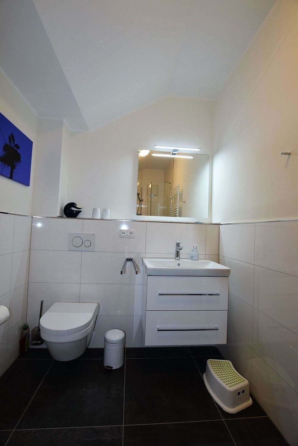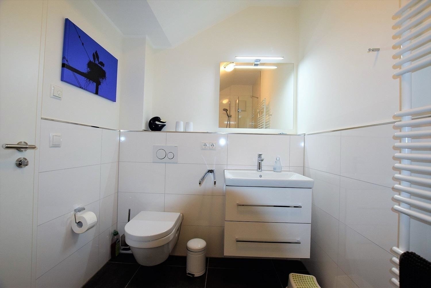 Die Studiowohnung Storchennest im Haus Meeresblick bietet Platz für zwei bis drei Personen und überzeugt durch ihre helle, moderne Ausstattung. Der Wohnraum ist lichtdurchflutet und verfügt über eine große Fensterfront sowie ein gemütliches Sofa, das zum Entspannen einlädt. Eine offene Küche mit angrenzendem Essplatz ist umfangreich ausgestattet, darunter Herd, Backofen, Kühlschrank mit Gefriermöglichkeit, Kaffeemaschinen und eine Spülmaschine. Das komfortable Schlafzimmer ist mit einem großen Doppelbett und einem großzügigen Schrank für ausreichend Stauraum ausgestattet. Das moderne Duschbad bietet eine bodentiefen Dusche, einen Waschtisch mit Spiegel und einen Handtuchwärmer. Ein Balkon mit Möbeln lädt dazu ein, die frische Luft zu genießen. WLAN ist verfügbar und ein Lift sorgt für barrierefreien Zugang. Haustiere sind erlaubt, maximal zwei mittelgroße Hunde.