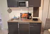 Willkommen in unserer charmanten und gemütlichen Ferienwohnung mit etwa 30 qm Wohnfläche – perfekt für Paare oder Alleinreisende, die einen entspannten Aufenthalt in ruhiger Atmosphäre suchen. Der offen gestaltete Wohn-/Schlafbereich ist liebevoll eingerichtet und verfügt über eine praktische kleine Einbauküche mit allem, was Sie zum Kochen benötigen. Ein gemütlicher Essplatz für zwei Personen lädt zu gemeinsamen Mahlzeiten ein. Nach einem erlebnisreichen Tag können Sie es sich vor dem modernen Flachbildschirm gemütlich machen oder entspannt im kostenfreien WLAN surfen. Für erholsame Nächte sorgt das komfortable Boxspringbett (1,80 m x 2,00 m), das Ihnen erholsamen Schlaf garantiert. Das moderne Badezimmer ist mit einer hochwertigen Dusche ausgestattet und bietet Ihnen eine angenehme Wohlfühlatmosphäre. Unsere Ferienwohnung ist der ideale Rückzugsort, um Ruhe und Komfort zu genießen und gleichzeitig die schöne Umgebung zu erkunden.