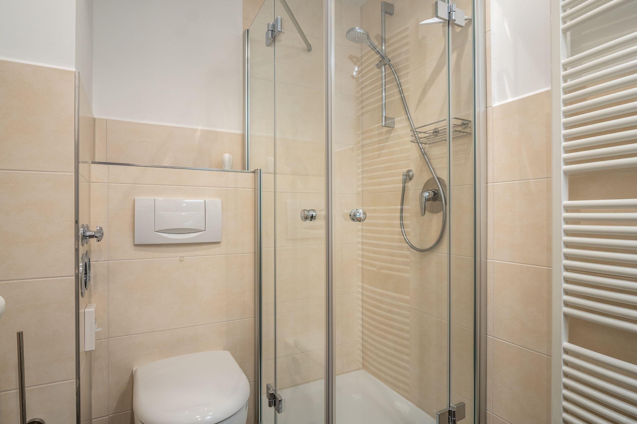 Zu der Ferienwohnung gehört natürlich auch ein modernes Duschbad.