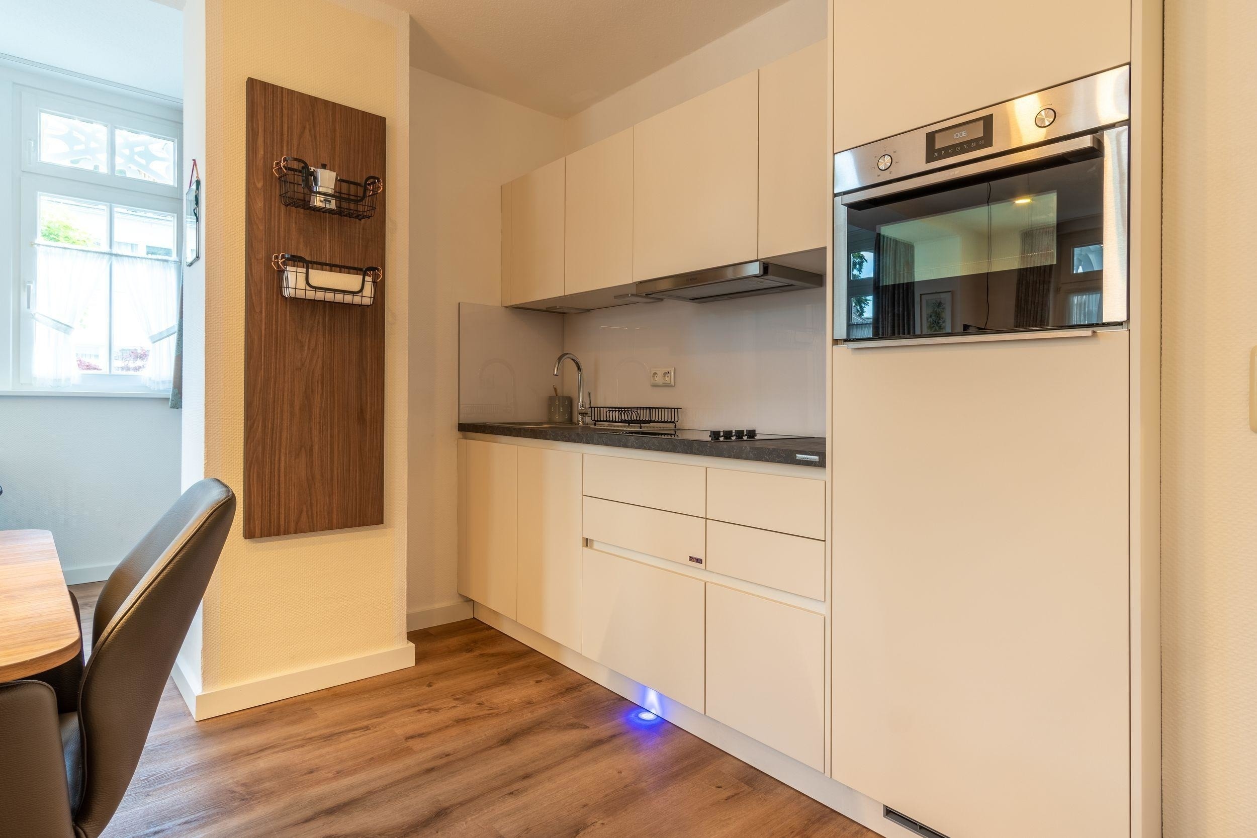 Im Wohn/Essbereich ist eine umfangreich ausgestattete Küchenzeile integriert. Ein Highlight davon ist die Desinfizierungsstation für Kleingeräte jeglicher Art.