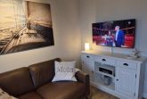 Im Wohnzimmer steht Ihnen, für gemütliche Stunden, ein Elektrokamin mit täuschend echtem Flammenbild mit Heizfunktion zur Verfügung.