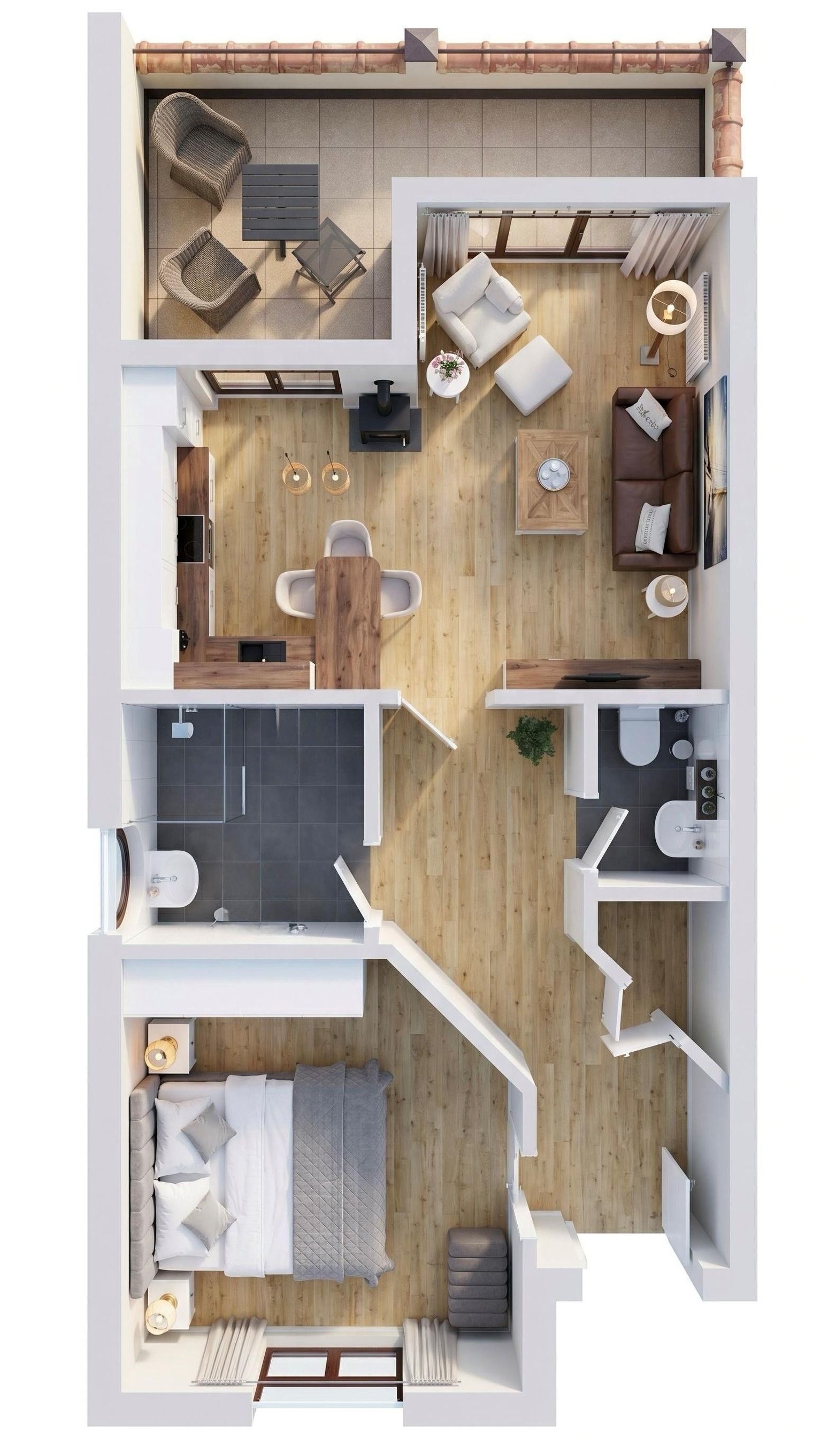 Diese schöne 2-Raum-Ferienwohnung befindet sich im 2. Obergeschoss auf der beliebten Anlage Urlaubs(t)räume am Meer. Auf ca. 47m² finden bis zu 2 Personen ausreichend Platz.