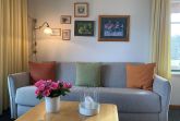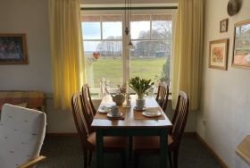 Unsere kleine im Landesstil gehaltene Ferienwohnung liegt im Erdgeschoss und hat eine Terrasse. Sie ist ca. 45 qm groß, verfügt über ein separates Schlafzimmer, ein Duschbad sowie eine voll ausgestattete Küchenzeile im Wohnbereich.