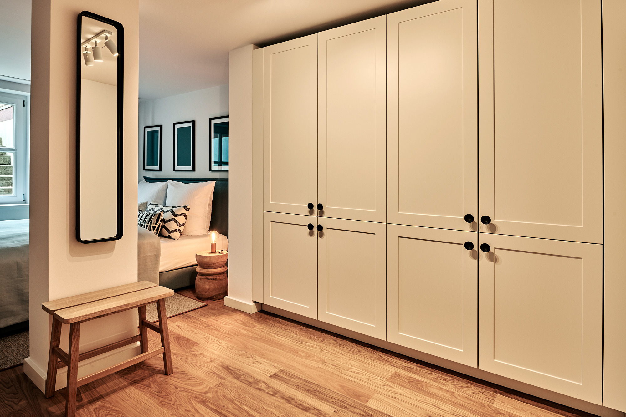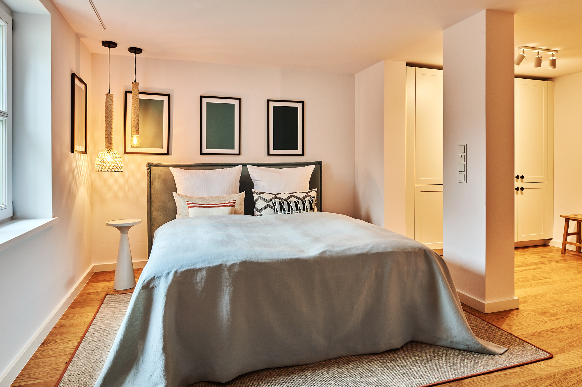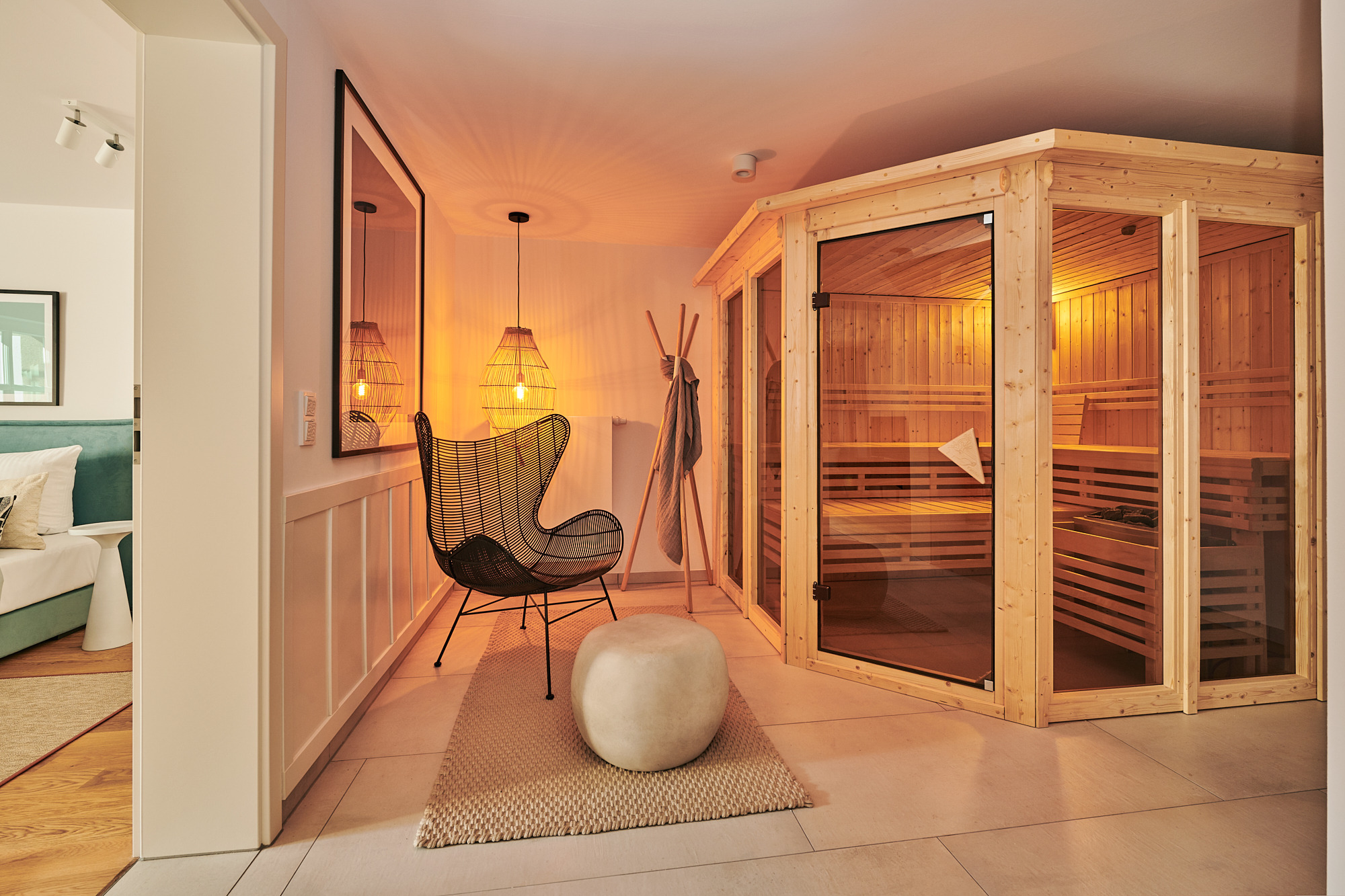 Die Ferienwohnung XL erstreckt sich über zwei Etagen im Erdgeschoss und Untergeschoss und verfügt über drei Schlafzimmer; zwei davon mit Kingsize-Betten sowie ein Zimmer mit getrennten Betten. Zur Wohnung gehören zwei Duschbäder, eine vollausgestattete Küche mit kleinem Essbereich für gemeinsame Kochsessions sowie einem kombinierten Wohn- und Esszimmer mit einer integrierten Schlafcouch für gemütliche, gemeinsame Stunden. Neben einer Terrasse zum angrenzenden Garten, ist die private Sauna im Souterrain das Highlight der Ferienwohnung und perfekt für alle Wellnessfans! Die Wohnung selbst ist hell und freundlich eingerichtet und lässt keine Wünsche offen.