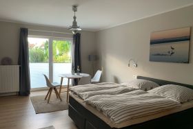 Die gemütliche, kleine Ferienwohnung für 2 Personen liegt in einem Einfamilienhaus und hat einem separaten Eingang. Die Küchenzeile ist sehr gut ausgestattet und ermöglicht eine sorgenfreie Selbstversorgung. Es steht Ihnen eine kleine sonnige Terrasse zur Verfügung sowie ein kleiner Schuppen für Fahrräder oder Strandutensilien.
