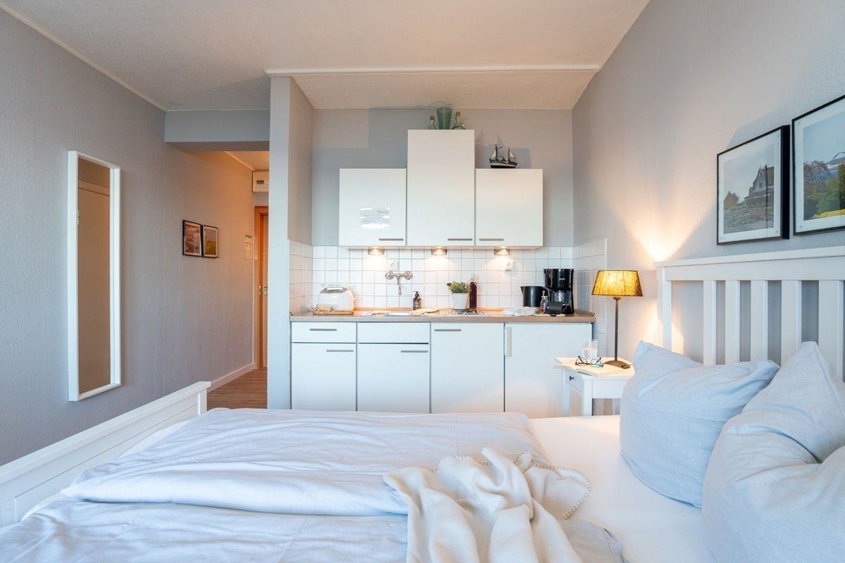 Studiowohnung für 2 Personen mit Meerblick, Doppelbett, Duschbad, Einbauküche, Flatscreen-TV, u.v.m. !