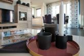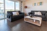 Vom Wohnzimmer aus gelangen Sie auf den Balkon mit Blick zur Ostsee.