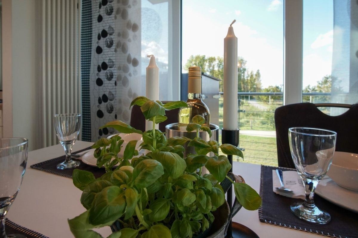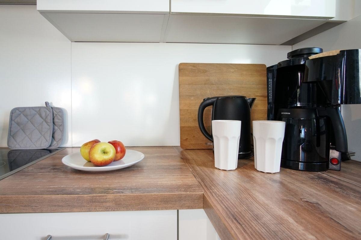 Urlauben Sie auf großzügigen 65 m² (Erdgeschoss/Hochparterre) mit Nordwest-Balkon. Das lichtdurchflutete Wohnzimmer ist mit einer gemütlichen Sofaecke (Schlafsofa 160*190cm), TV und DVD-Player ausgestattet. Im Essbereich finden bequem vier Personen Platz zum Schlemmen. Die angrenzende Küchenzeile ist, für den Urlaubsbedarf, voll ausgestattet. Ein Backofen und ein Geschirrspüler gehören ebenso dazu, wie die Kaffeemaschine, der Wasserkocher und ein Toaster. Geschirr und Besteck sind ausreichend vorhanden.