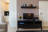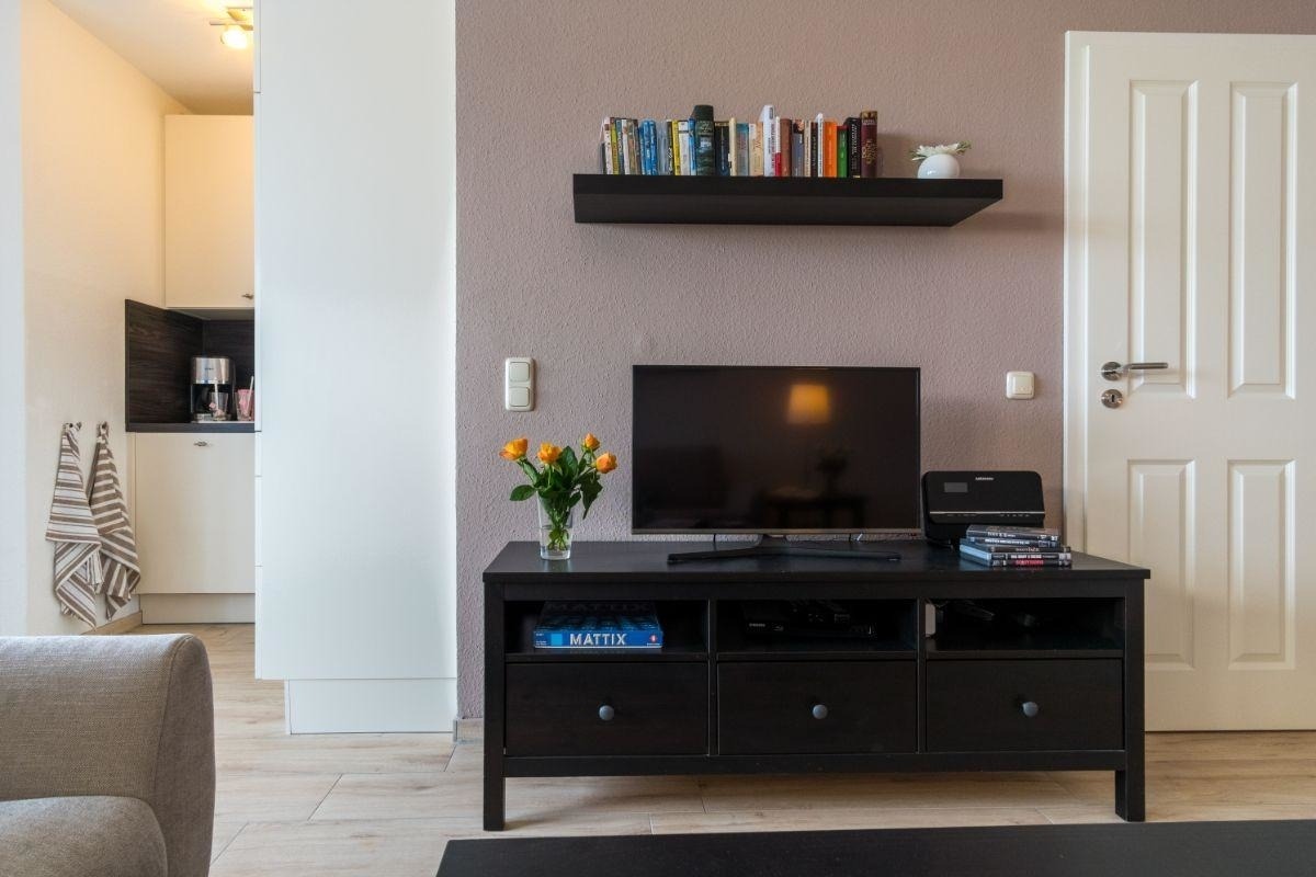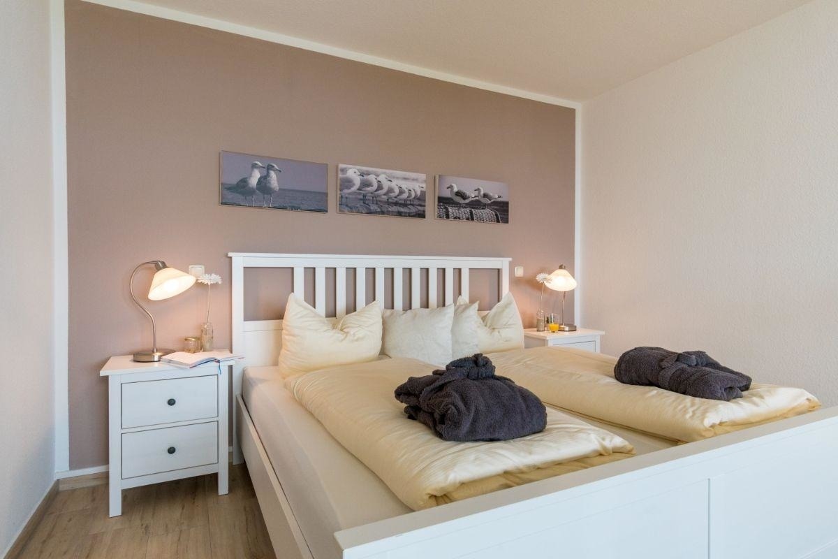 Die zuletzt 2021 modernisierte 45m²-Wohnung verfügt über einen großzügigen Wohn-Schlafbereich mit einem komfortablen Doppelbett im hinteren Bereich, einer gemütlichen Sofaecke mit Flatscreen-TV und der Essecke für vier Personen. Der offene Küchenbereich ist für den Urlaubsbedarf voll ausgestattet. Außerdem stehen Ihnen noch eine Geschirrspüler und eine Mikrowelle zur Verfügung. Das angrenzende Kinderzimmer verfügt über ein Einzelbett und ist auch für einen Erwachsenen geeignet.
