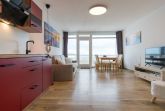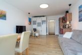 Die modernisierte 36m²-Wohnung befindet sich in der 1. Etage im Haus Atlantis I und wurde zuletzt 2020 modernisiert. Der lichtdurchflutete Wohn-Essbereich verfügt über ein gemütliches Sofa, eine kleine Essecke und eine vollausgestattete Küchenzeile.