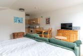 2 Personen finden im 1,80 m breiten, neuem Boxspringbett bequem Platz. Zur weiteren Ausstattung gehört eine Couch, TV sowie ein gemütlicher Essbereich.