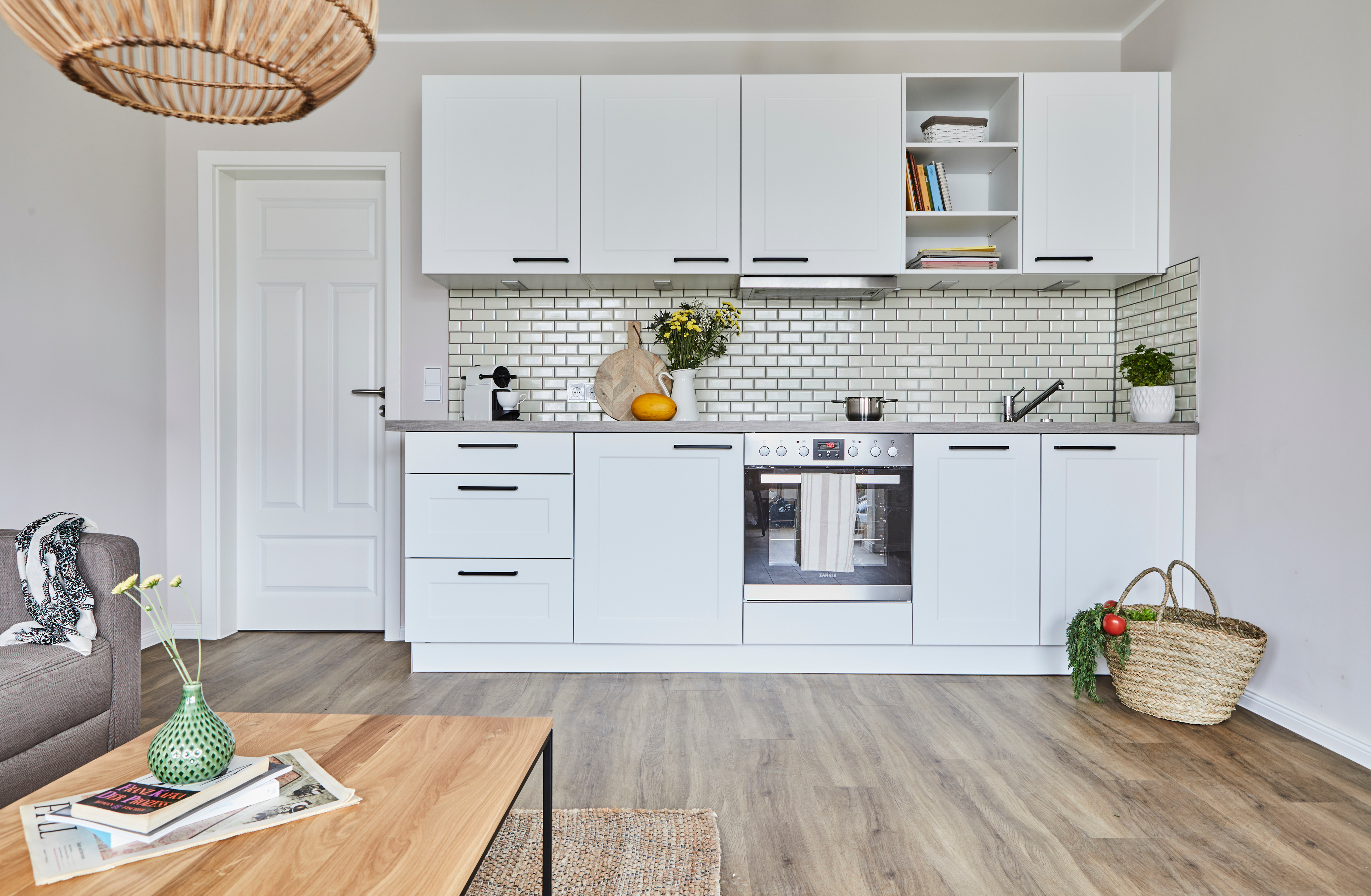 Die Wohnung verfügt über einen großen Wohnraum mit integrierter, moderner Küchenzeile und einem separaten Schlafzimmer. Das Badezimmer mit großzügiger Dusche besticht durch moderne Designelemente. Die Wohnung verfügt zusätzlich über eine Klimaanlage.