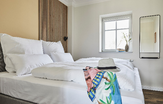 In unserer Superior Suite erwartet Sie eine eigene Terrasse elegantem Terrassenmobiliar. Die Ferienwohnung erstreckt sich mit einem großzügiges Raumangebot von ca. 59 m² und Platz für bis zu zwei Personen. Es befindet sich neben dem gemütlichen Schlafzimmer der Wohnbereich mit Küchenzeile sowie ein Badezimmer. Die Superior Suite mit Terrasse ist besonders hell und bieten Ihnen noch mehr Raum zum Verweilen.