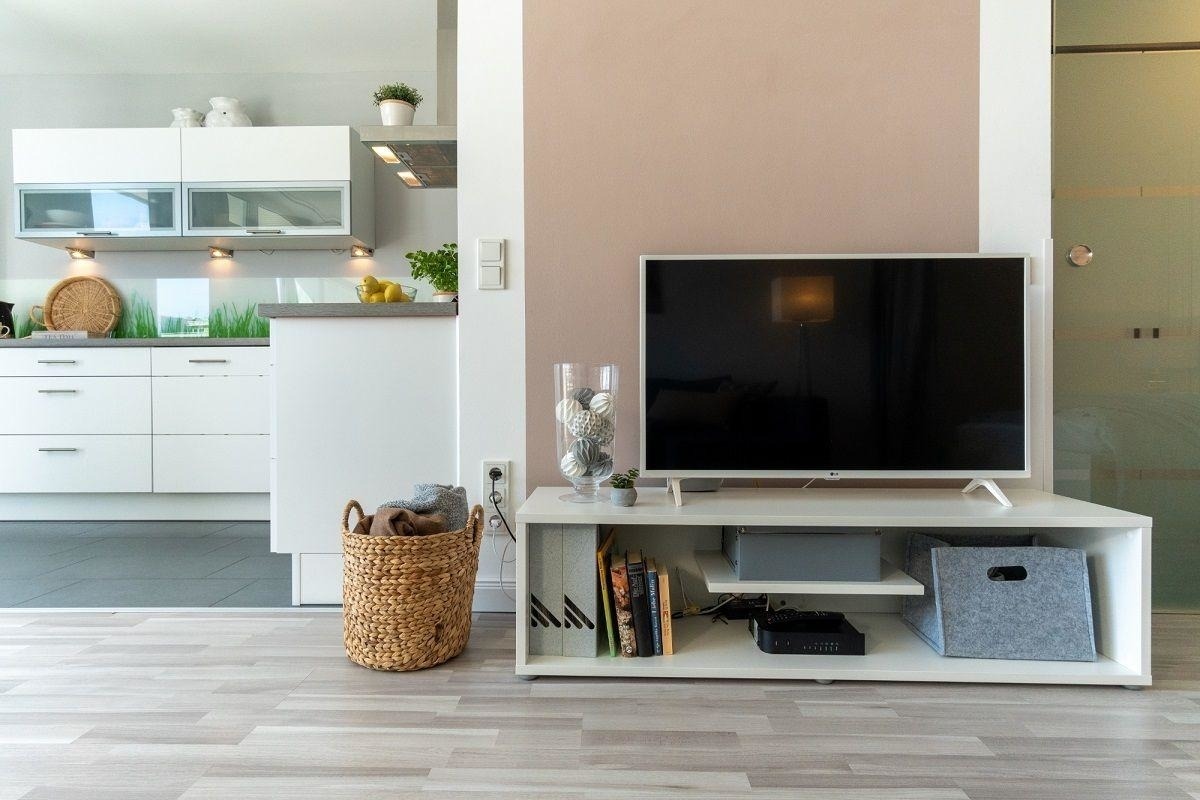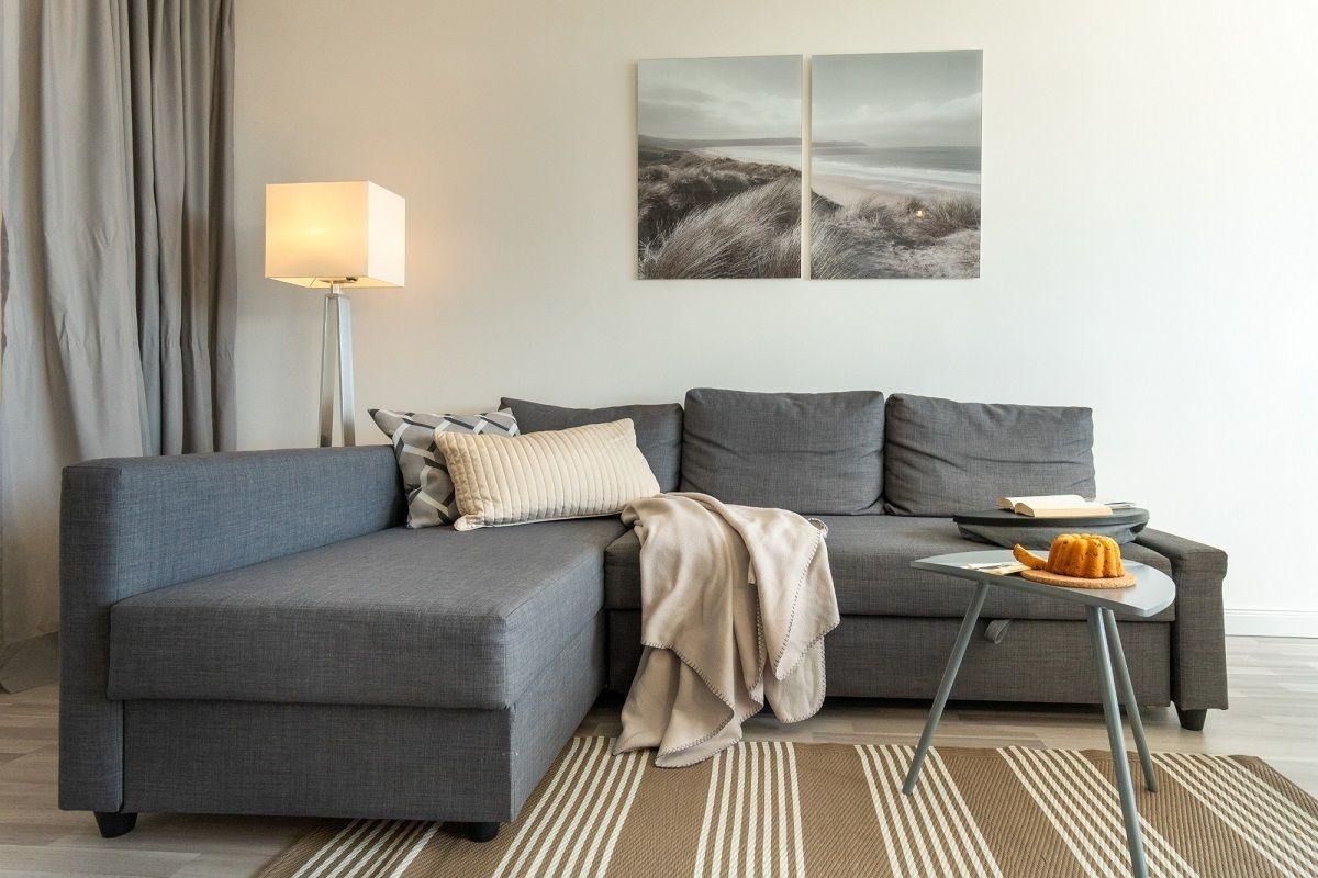 Der großzügige Wohnbereich ist mit einem gemütlichen Schlafsofa (ca. 140x200, einen Flatscreen-TV und einem Bose-Soundtouch eingerichtet.