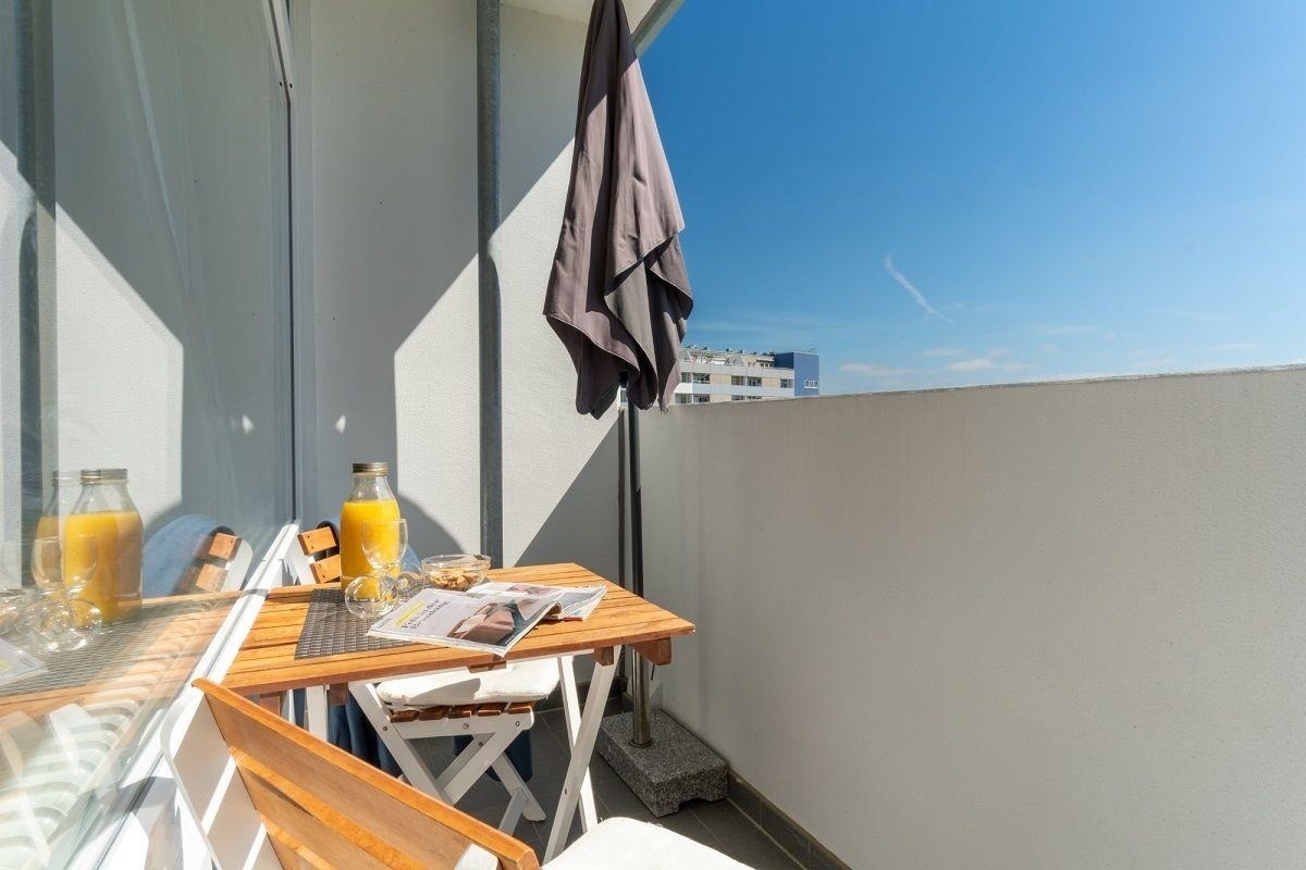 Die renovierte Studiowohnung befindet sich in der 7. Etage im Haus G (Aufzug vorhanden) und verfügt über einen traumhaften Ausblick über den Binnensee bis hin zum Hafen und der Ostsee.