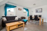 Großzügiger Wohn- und Essbereich mit SAT-TV, Radio. Vollausgestattete Einbauküche mit Ceranfeld, Backofen, Geschirrspülmaschine, Kühlschrank (kein Gefrierfach), Mikrowelle, Kaffeemaschine, Toaster, Wasserkocher usw. Hier befindet sich auch eine Fußbodenheizung. Ein Wäscheständer steht ebenfalls zur Verfügung.