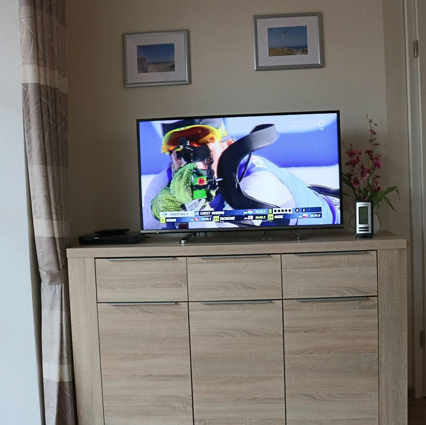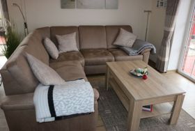 Der angrenzende Wohnbereich ist mit gemütlicher Eckcouch und neuester Unterhaltungselektronik, z.B. großer SAT-TV, Internetradio, USB ausgestattet. Spiele sorgen für gesellige Stunden.