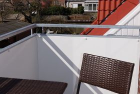 Vom Wohnbereich aus gelangen Sie auf den sonnigen, möblierten Balkon in Südlage mit Sonnenschirm, wo 4 Personen bequem Platz finden und den Blick auf die Gracht genießen können.