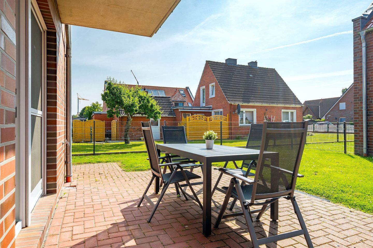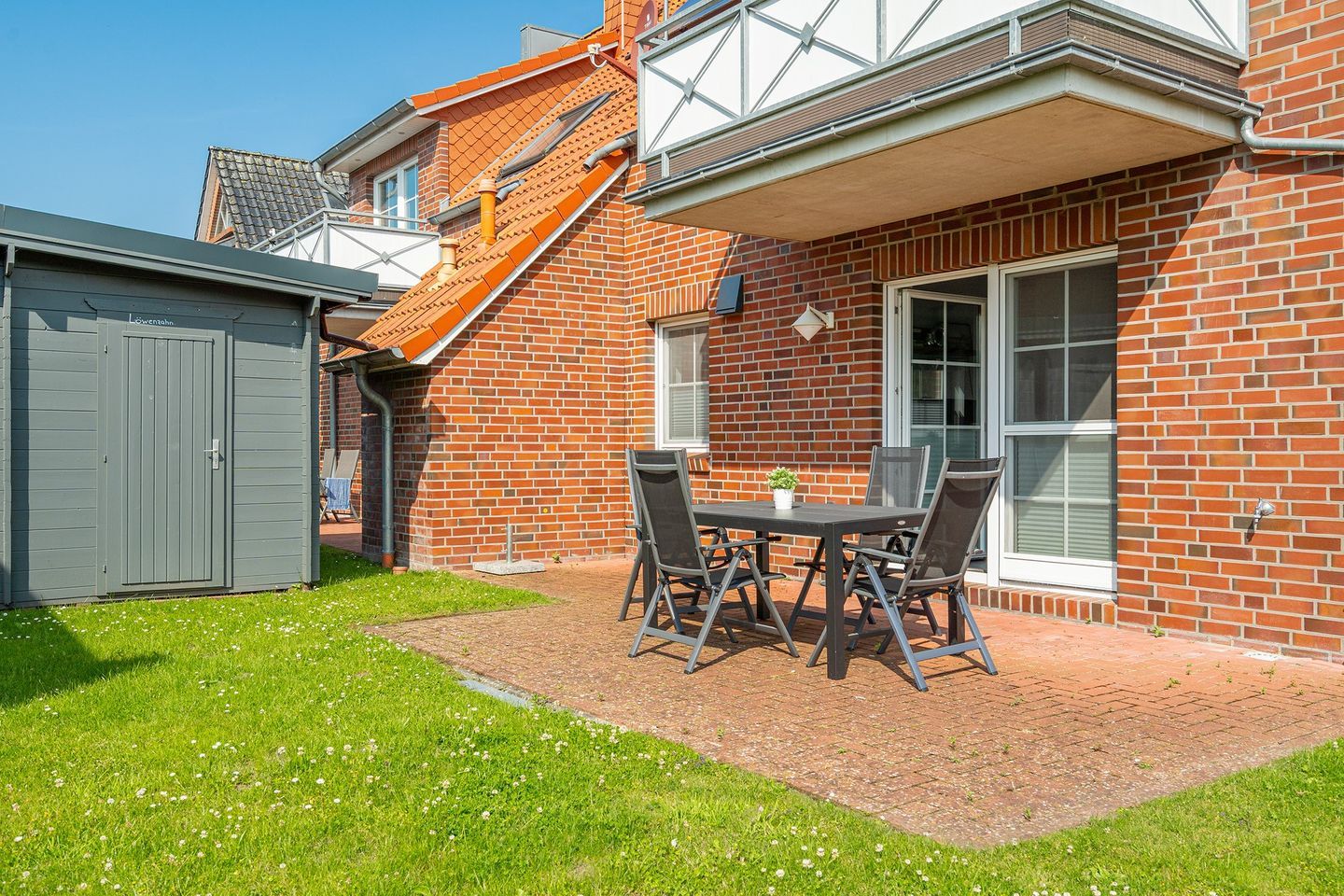 Ein kleiner, eingezäunter Garten mit gemütlicher und möblierter Terrasse und Sonnenschirm steht Ihnen für Sonnenstunden zur Verfügung.