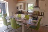 Der offene Wohn- und Essbereich ist mit Sofa und zwei Sesseln, einem zentralen Eßtisch mit 6 bequemen Schwingstühlen und TV-Schrank mit 40''-Flat-TV, Bose-Soundbar und Playstation 3 ( als Blueray/DVD- und Musikplayer) ausgestattet und läd zum Entspannen ein. Für Behaglichkeit sorgt eine Fußbodenerwärmung.