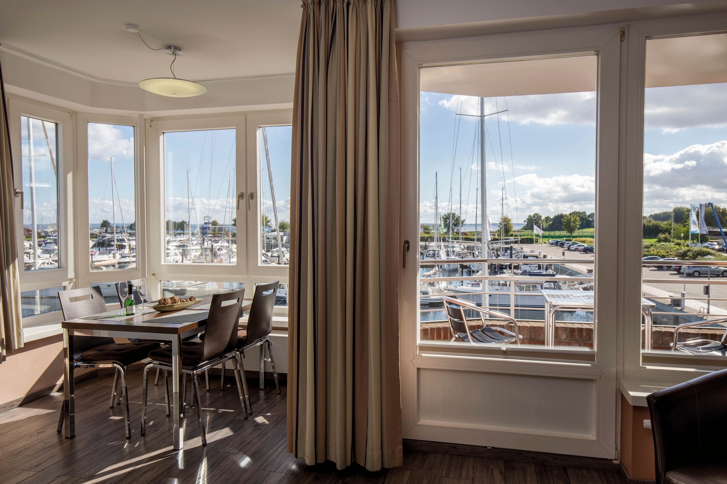 mit Balkon: Blick über den Yachthafen und die Ostsee