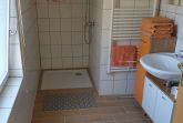 Bad: Dusche, Waschbecken, WC, zusätzlicher Stauraum