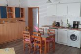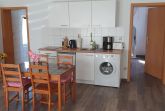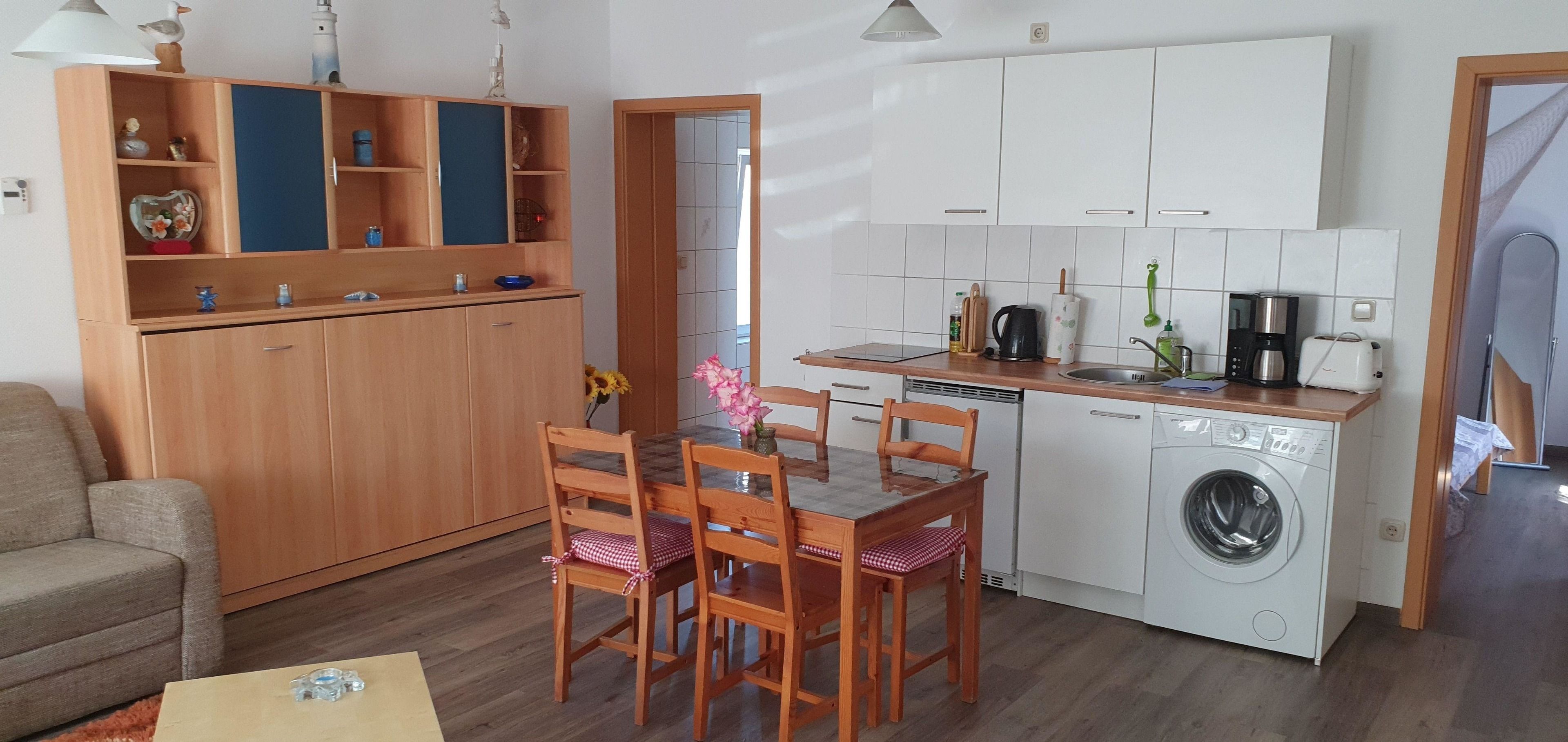Wohnschlafraum mit integrierter Küchenzeile:Schlafcouch für 2 Personen, Couchtisch, SAT-TV, Esstisch mit 4 Stühlen, Küchenzeile mit 2 Kochplatten, Kühlschrank, Toaster, Kaffeemaschine