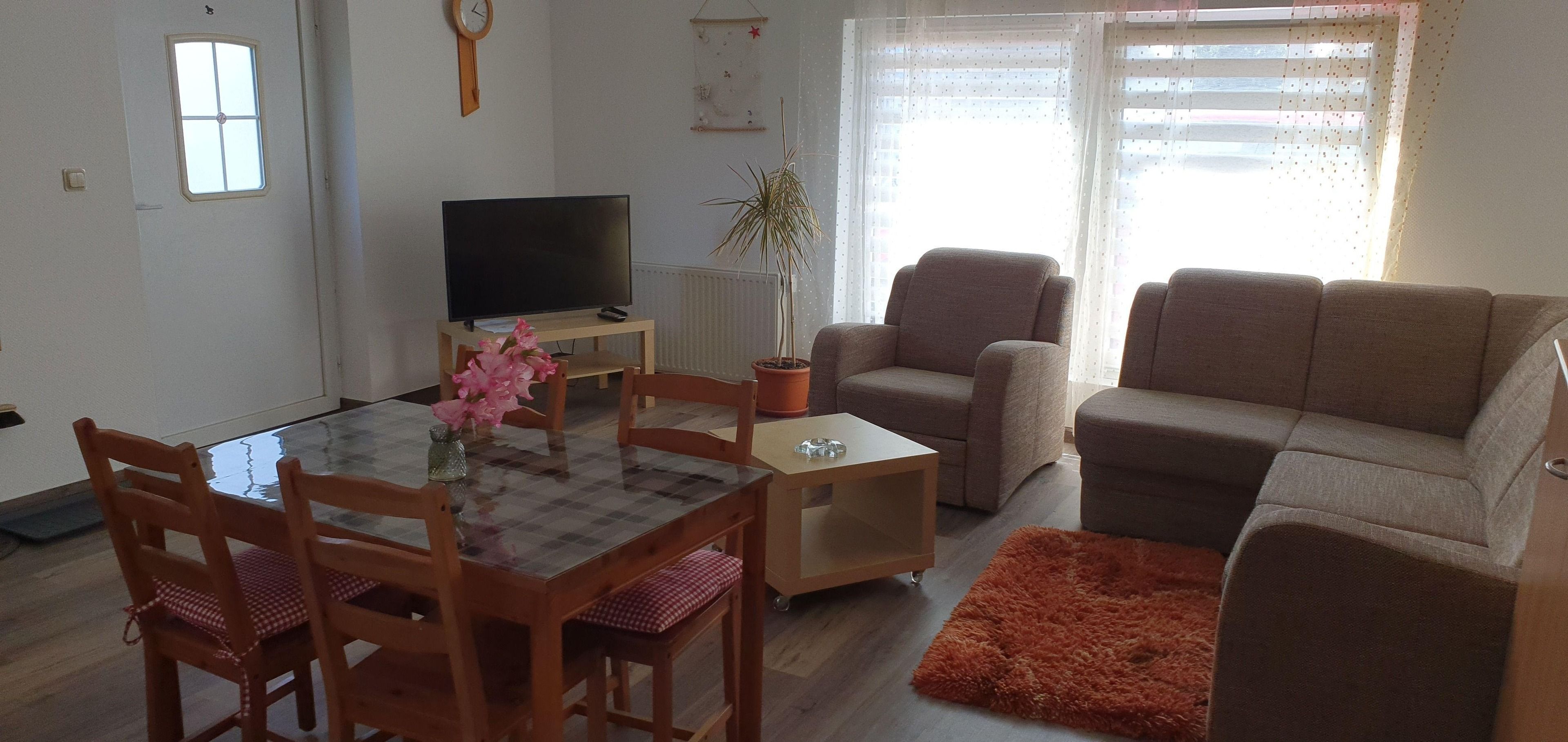 Wir stellen Ihnen auf 50qm ein komfortablen Wohn- und Schlafraum und einen separaten gemütlichen Schlafraum zur Verfügung.
