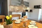 2 Zimmer ca. 50 qm für1-4 Personen, 1. OG im Gästehaus Kormoran, Waldstraße 64 b, Ostseebad Prerow. Wohnzimmer mit Schafcouch, Sitzgarnitur, SAT-TV/Radio, WLAN, Esstisch, moderne Küchenzeile mit Backofen, Geschirrspülmaschine, Ceranfeld, Mikrowelle, Schlafzimmer mit Doppelbett, Dusche/WC, Gäste-WC, Süd-West-Balkon.