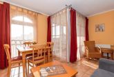 An den Wohnbereich grenzt der Essbereich für 4 Personen. Genießen Sie hier ausgedehnte Mahlzeiten und lassen den Blick durch das Fenster zum Yachthafen schweifen.