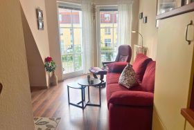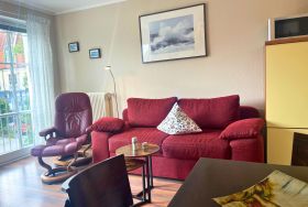 Die helle 2-Zimmer-Wohnung für bis zu 3 Personen besticht durch Ihre großen Fenster und den besonderen Lichteinfall, der ein behagliches Ambiente schafft.