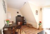 Die angrenzende Wohnküche ist komplett mit Ceran-Kochfeld, einem Kühlschrank mit Gefrierfach ausgestattet. Selbstverständlich stehen auch sämtliche Haushaltsgeräte wie Toaster, Kaffeemaschine und Wasserkocher bereit. Hier müssen Sie auf nichts verzichten.