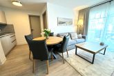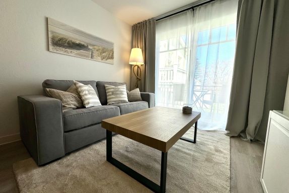 Vom Wohnbereich aus haben Sie Zugang zum Balkon, welcher mit Sitzmöbeln ausgestattet ist.