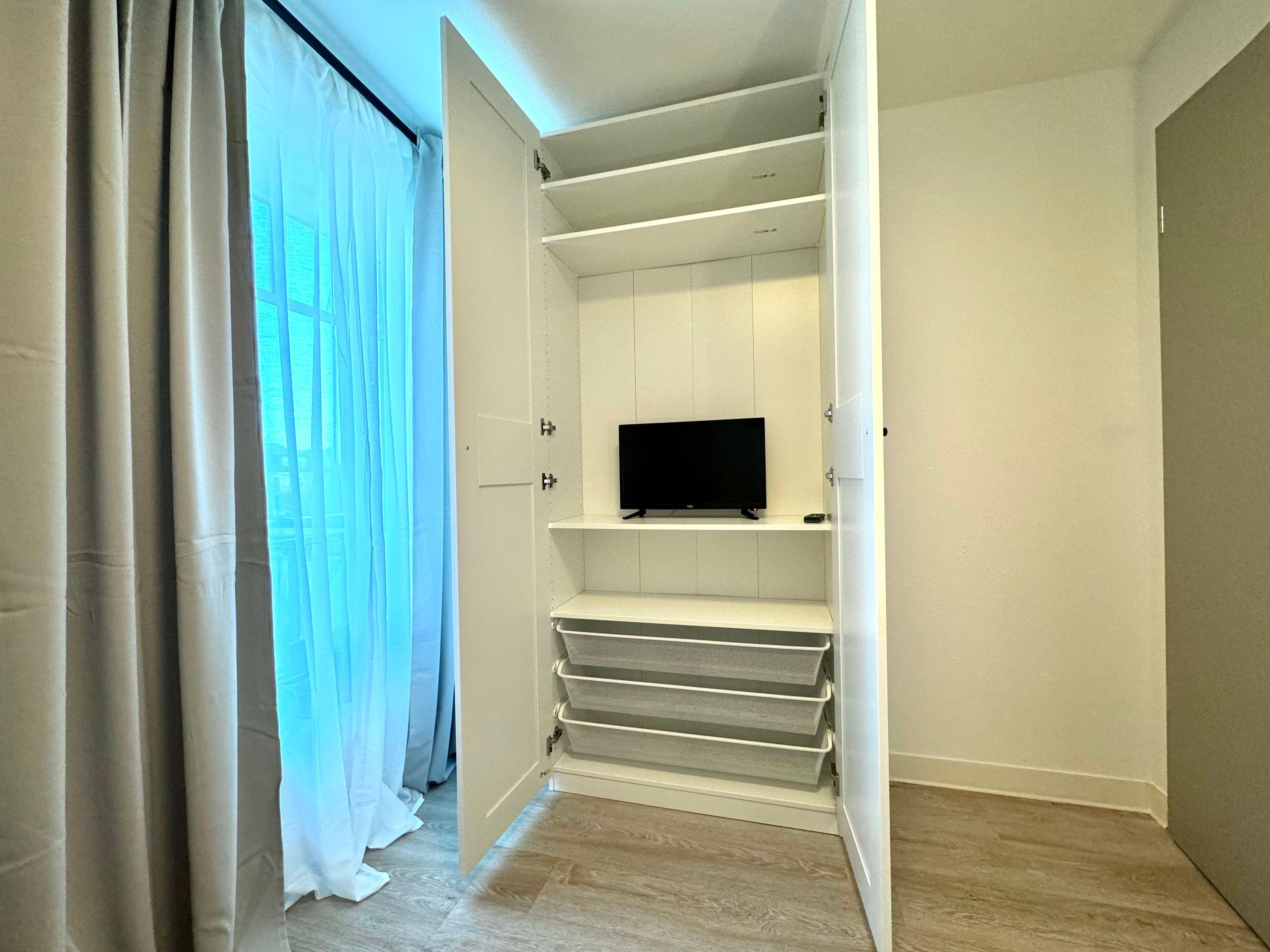 Im zweiten Schlafzimmer befindet eine Schlafcouch und ebenfalls ein geräumiger Kleiderschrank. Hier steht Ihnen ein zusätzliches Fernsehgerät zur Verfügung.